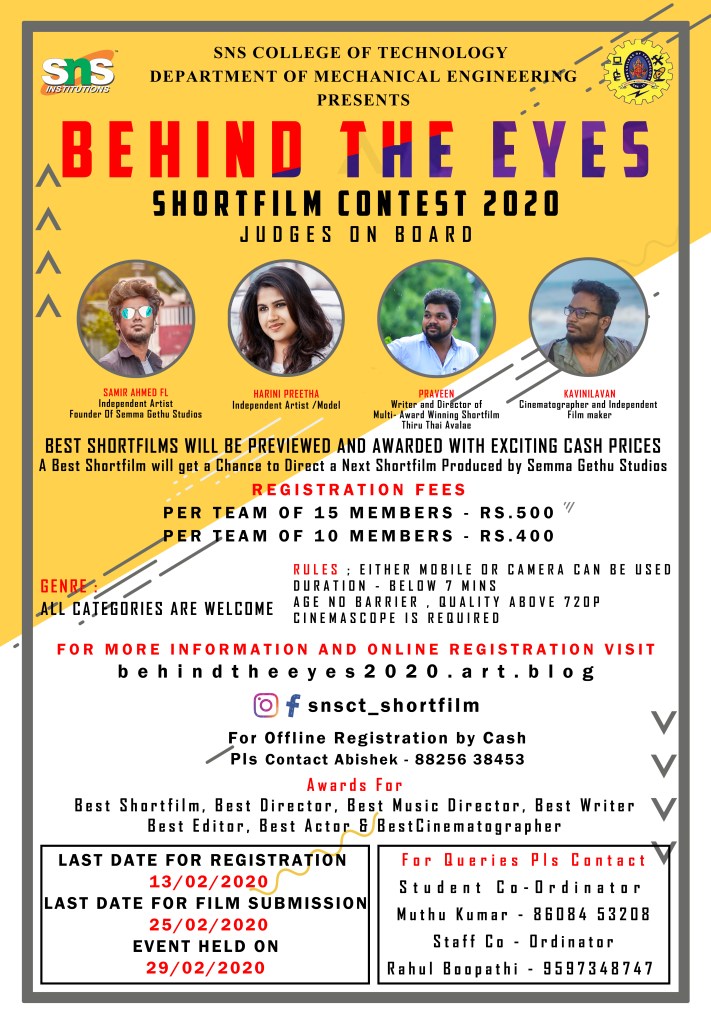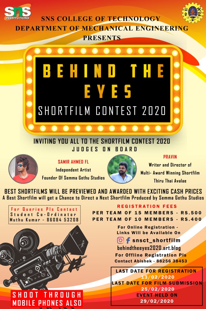 SHORFILM CONTEST BY SNS COLLEGE OF TECHNOLOGY – DEPARTMENT OF MECHANICAL ENGINEERING
